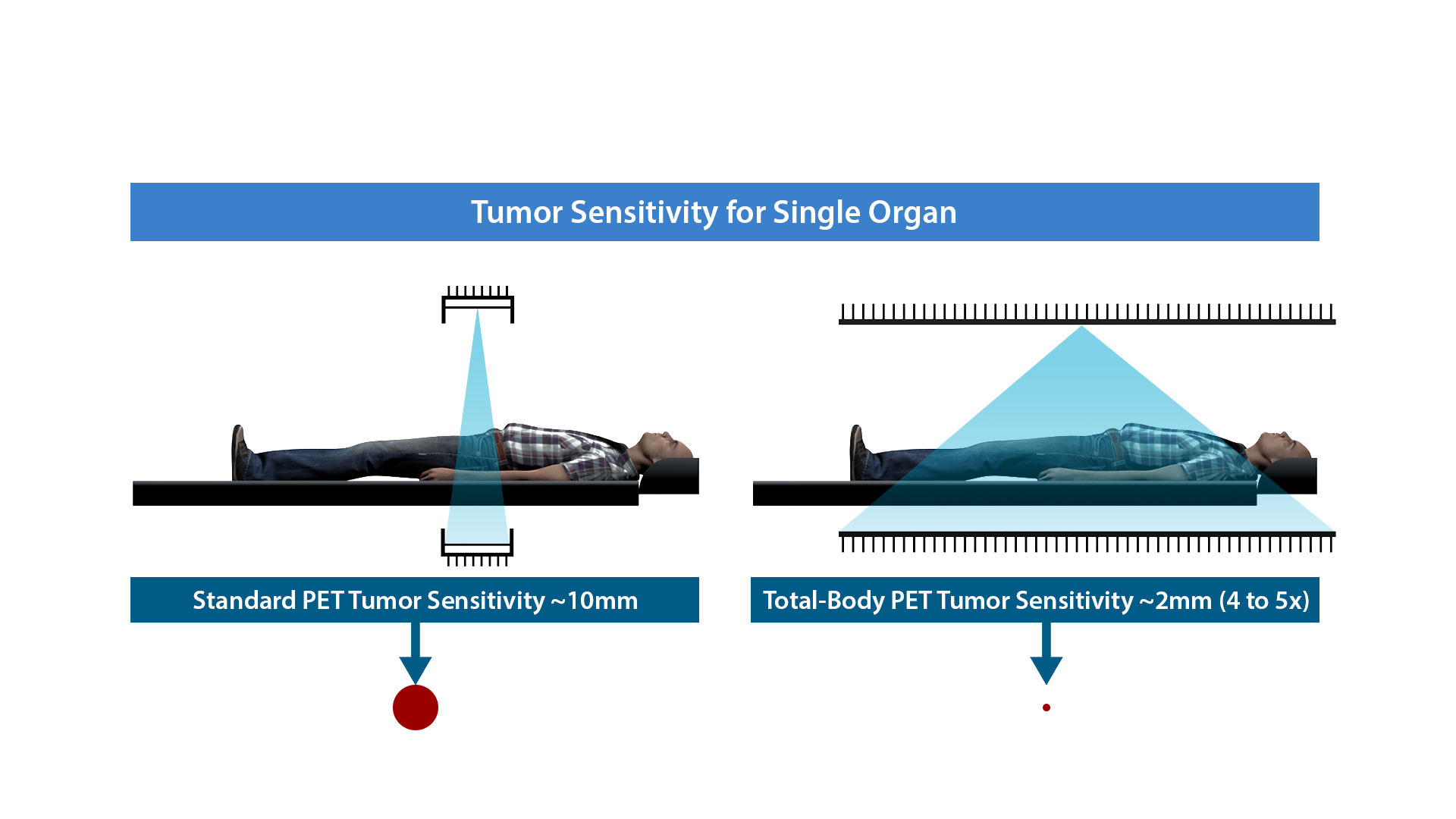 - Higher Sensitivity than standard PET
